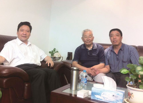原中國大學校長,現中國銀行副行長陳雨露(左一)及父親陳輝(原藁城市人大副主任)(左二),與我公司董事長張風軍(右一)親切交流。